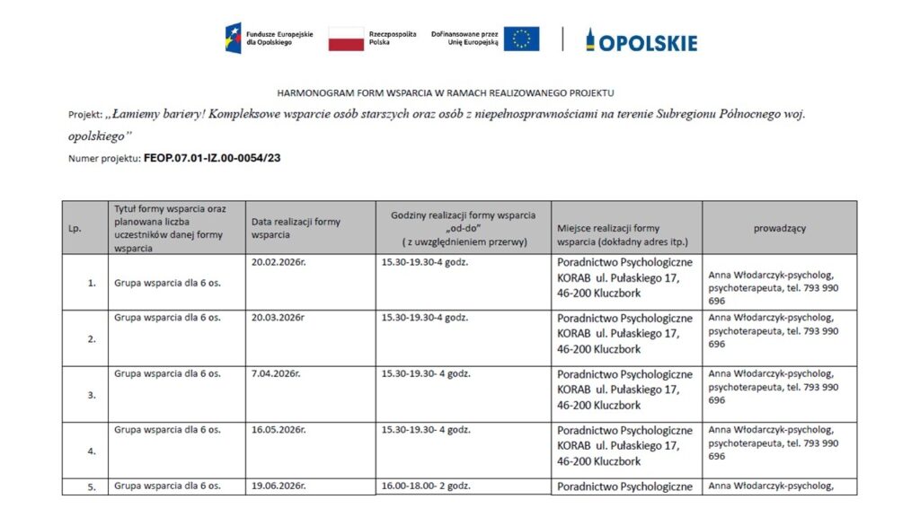 „Łamiemy bariery! Kompleksowe wsparcie osób starszych oraz osób z niepełnosprawnościami na terenie Subregionu Północnego woj. opolskiego”