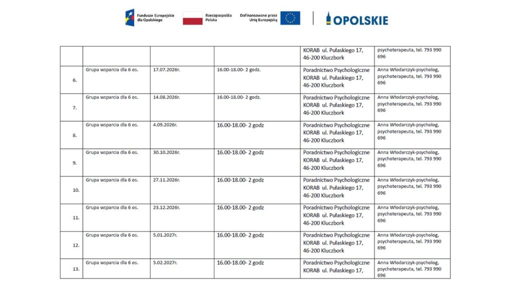 6. Wsparcie psychologiczne i wytchnieniowe dla opiekunów faktycznych